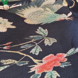 HMYT He Mei Ya Te Top Large Black Floral Orient Pleated Glam Elegant Chic Unique