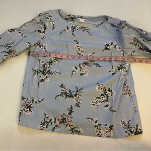 H&M blouse Function arm tie and slits down the side Size 6 Blue and white stripes with floral detail Great condition SST