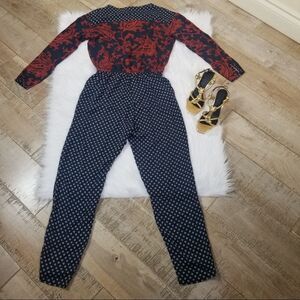 H & M long sleeves print taper jumpsuit in size 4