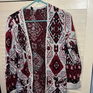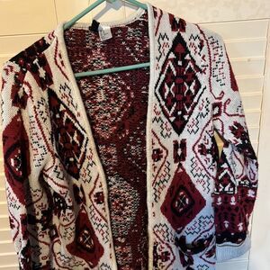 H&M provided open cardigan size extra small, longer style with two front pockets, some minor pilling but in overall good condition when we return measures 23 inches across the chest with the total length is 33 inches