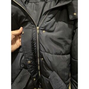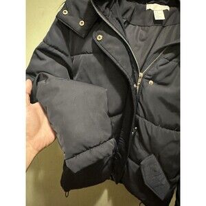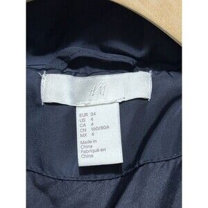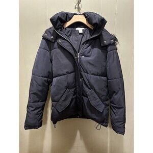 H&M's Puffer Jacket Womens Sz 4 Navy Blue Faux Fur Trim Winter Snow Coat Zip Up