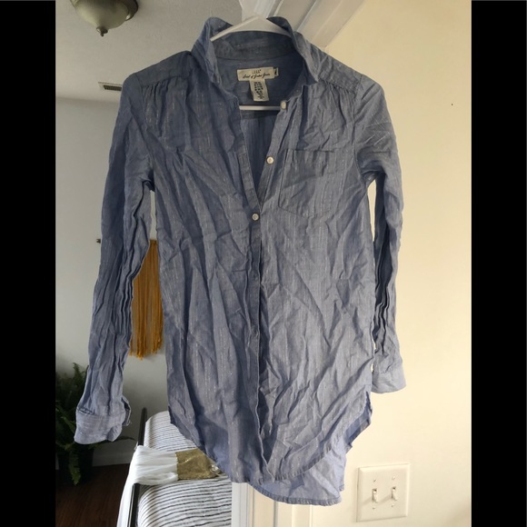 H&M’s pinstriped button down, lightly silver stripes barely noticeable but so classy! Wrinkles are free of charge! (Fall out easily when hung properly!)