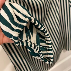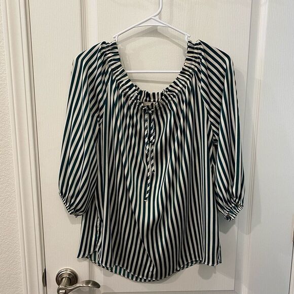 Gorgeous top. Sadly too big for me. Elastic shown up top and by arm holes. Non smoking. Like new.