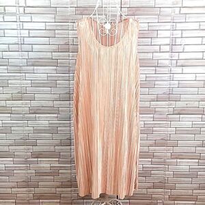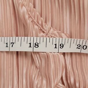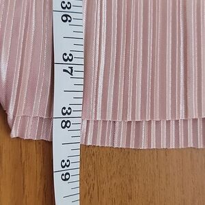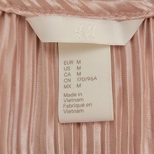 100% polyester shiny crinkled fabric in a soft pink color sleeveless tunic dress by H&M. Lightweight and loose fitting with a round neckline with trim and a straight hemline. Great pre-owned condition.