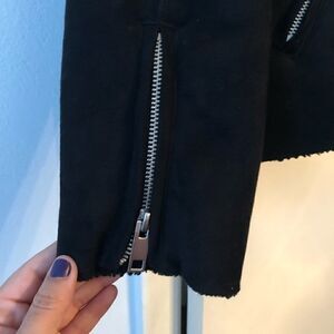 H&M women’s motor biker jacket black faux fur suede size 6 eur 38