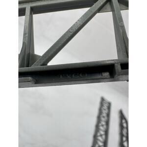 The HO Scale TYCO Trestle Bridge is a vintage model train accessory designed by TYCO. This plastic bridge comes in a gray color and includes a crossing setup for model railroads. Its HO gauge size makes it compatible with HO scale model train layouts, adding a realistic touch to the scenery. Perfect for collectors and hobbyists looking to enhance their model railroad display with a classic and detailed bridge structure.