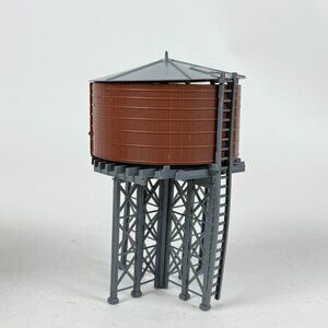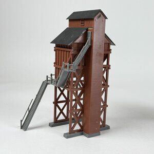 Transform your model railroad into a bustling scene of industrial charm with this HO scale water tower and coal station set. The intricate attention to detail, from the textured roof of the coal tower to the lattice support of the water tank, brings life to your layout. These dual structures are a nod to a bygone era when steam locomotives ruled the rails. The coal station stands tall with a staircase that invites figures to climb up, and the water tower adds a finishing touch to make any train station complete. Each piece is crafted with sturdy plastic, colored in rich brown and gray tones, evoking realism and functionality in your miniature world.