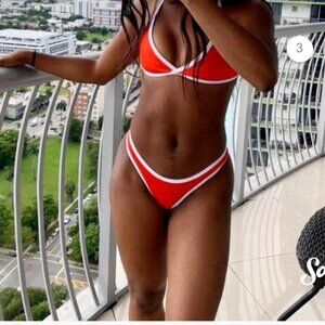 HOAKA Hawaii Red/white set cheeky board set bikini size M/L