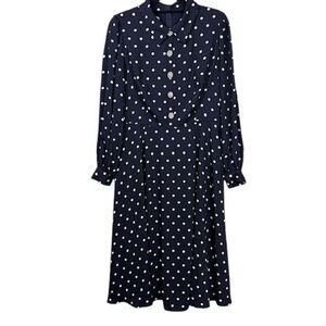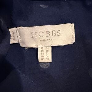 HOBBS London Ayla Spot Fit & Flare Navy Blue Polka Dot Dress Crystal Button Size 10. Excellent condition. See photos for details and unstretched measurements. Shop my closet for more new Designer Apparel and quality preowned apparel and bundle multiple items for discounts and one shipping fee!