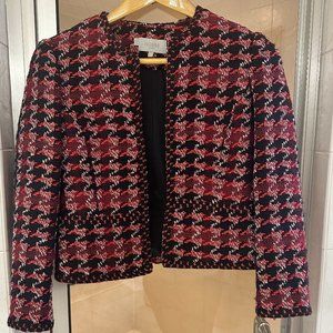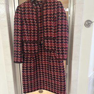 **Bought separate but selling as a set** Hobbs London A-Line Dress and Matching Jacket Red Houndstooth Print Fringe & Glitter Accents Short Sleeve with Mock Neck Concealed Zip Closure at Back Dress still has tag on it but tag was removed form jacket BOTH ITEMS ARE SIZE 6