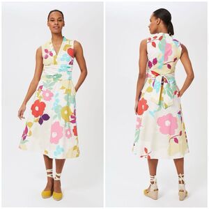 HOBBS Marie Sleeveless Midi Sheath Dress Floral Sleeveless Cotton Size 4
