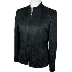 HOBBS Marilyn Anselm Black Textured Jacquard Zip Front Jacket Women’s Size 10