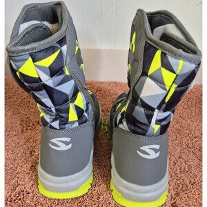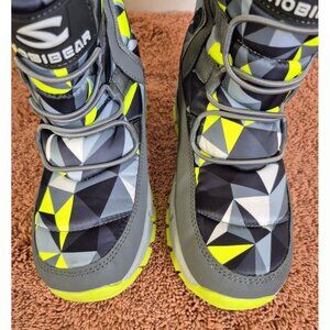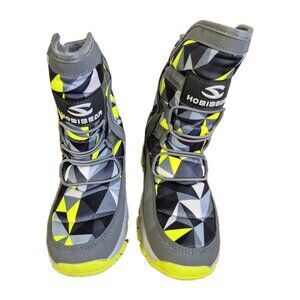 The HOBIBEAR Boys Girls SnowBoots in MultiColor Size Kids Child #36 Size 2 (230) AW3771 are stylish and functional winter boots equipped with Velcro closures for easy wear. Featuring a geometric pattern and faux fur lining, these boots are designed for outdoor activities like walking and hiking in cold weather. The synthetic upper and outsole materials provide durability while keeping the feet warm and insulated. Perfect for school, Christmas, or outdoor adventures, these boots are a practical choice for boys and girls alike. (DSC)