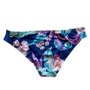 COLORFUL TROPICAL PRINT WITH CROCHET INSET DETAIL — Show off your summer tan in this trendy swim item that features a colorful, tropical flora design