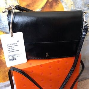 HOBO BAGS POLISHED LEATHER JILL CROSSBODY PURSE, BLACK, NEW WITH TAGS