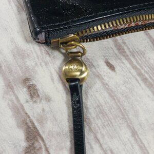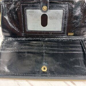 HOBO Black Patent Leather Clutch Bifold Wallet Gold Tone Lock Zip Top Pocket 7.5