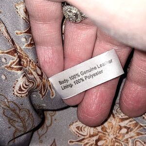 Gray tumbled leather exterior with an adjustable brown leather strap