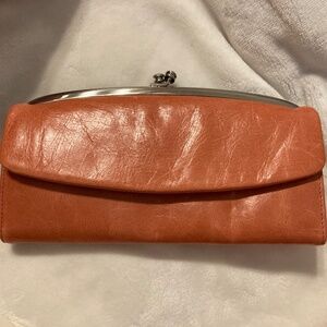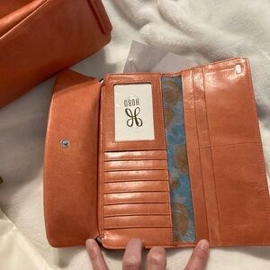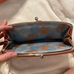 HOBO brand clutch wallet with fold out card / dollar bill storage.