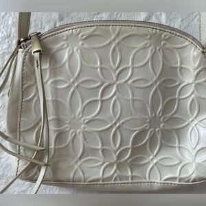 HOBO Cream Leather Crossbody Bag Cream leather crossbody bag by Hobo International Swirl design Opens to 3 separate compartments Floral lining Adjustable strap