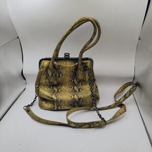 HOBO Glam Snake Leather Brown GINGER Satchel Crossbody Frame Convertible Bag