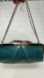 Very gently preowned with very little wear on this beautiful leather clutch from Hobo International. Classic soft crackle teal colored leather with a pleat near the twist lock. Triple chain that can be tucked inside or leave out. Inside has. Fabric that shows no sign of being used.