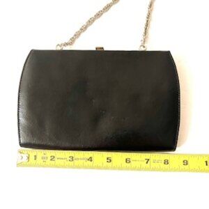 HOBO International Black Leather Clutch/Handbag with Silver Chain (Vtg)