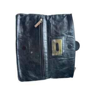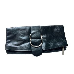 HOBO International Black Leather Foldover Clutch Wallet