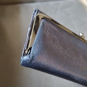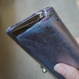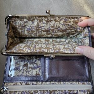 HOBO International Metallic Lilac Leather Kiss Lock Tri Fold Wallet w/o Mirror