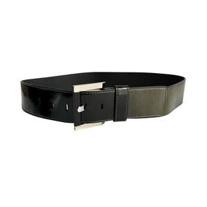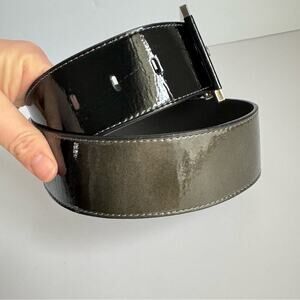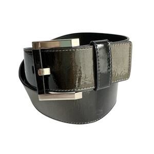 HOBO International Patent Leather Statement Belt Wide Waist Black Gray Ombré Womens Large Square Silver Tone Buckle