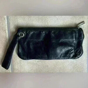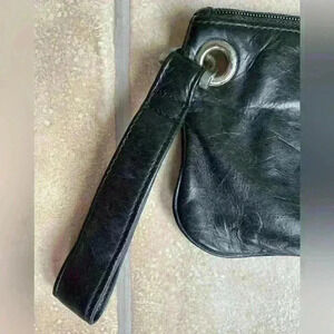 HOBO International Vida Wristlet Wallet Zip Clutch Distressed Leather Black
