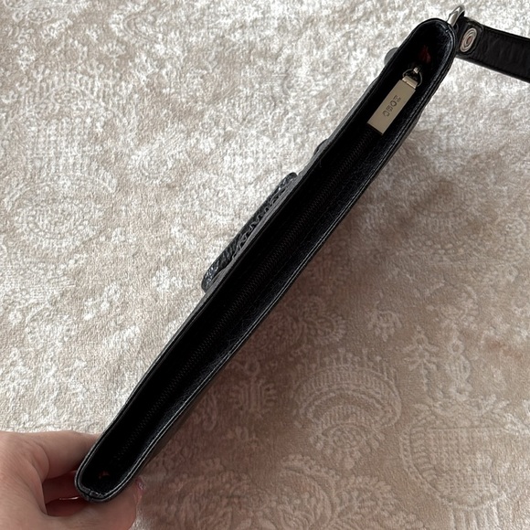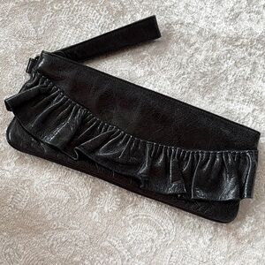 HOBO International Vintage Genuine Leather Black Ruffle Zippered Clutch Wristlet