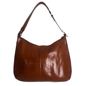 HOBO International Vintage Whiskey Smooth Brown Leather Flat Hobo Shoulder Bag