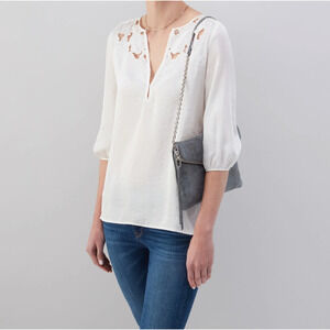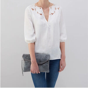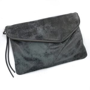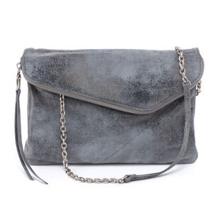 HOBO Jessa Envelope Clutch Bag Grey Buffed Leather Convertible Shoulder Strap