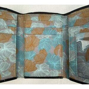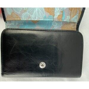 HOBO Jill Leather Wallet Black Trifold Crackled Snap Closure Autumn Leaves