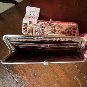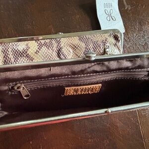 Hobo International classic Lauren wallet in beautiful sand snake print leather in natural hues. NWT.