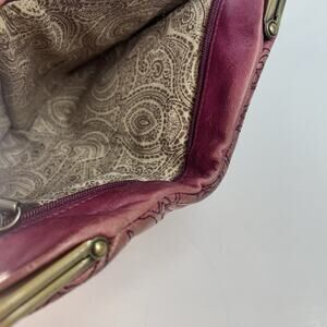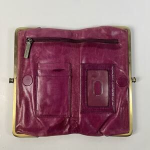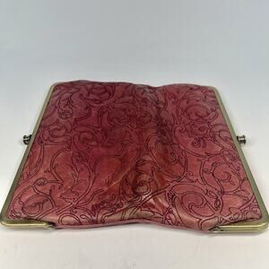 HOBO Lauren Bifold Clutch Wallet Pink Fuschia Embroidered Distressed Leather
