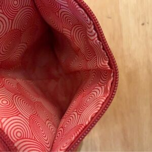 The interior features multiple compartments, including a zip pocket with monogrammed pull an ID holder, and several credit card slots, and is large enough to fit a cell phone.