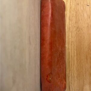 The wallet is crafted from leather that is intended to become softer and more beautiful over time with use and wear.