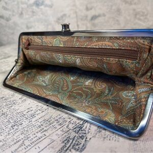 Exterior Front: Pocket with hidden magnet closure; Front Frame Compartment: Zip pocket; Back Frame Compartment: Bill slot, slip pocket & 6 credit card slots