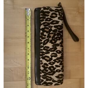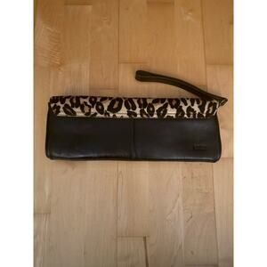 HOBO Leopard Print Clutch Wristlet Leather Purse Long Calfhair Tan Black