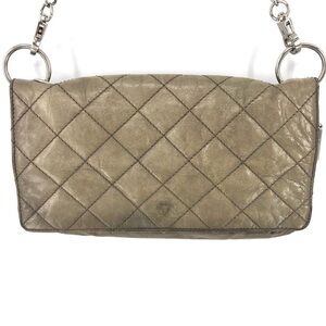 HOBO Quilted Leather Purse Shoulder Bag Convertible Clutch in Taupe Chain Strap
