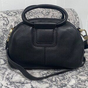 NEW HOBO Sheila Genuine Calf Hair & Leather Leopard Satchel, Small. Leopard print, black trim, black top handles, black crossbody strap, zipper closure on