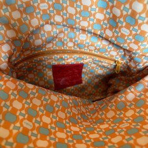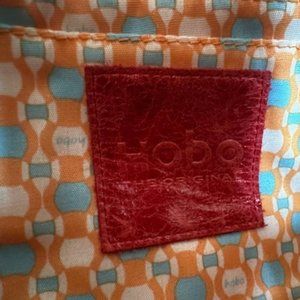 HOBO leather Bag. Perfect bag for going out. Has a metal chain but can be tucked inside. Fun pattern inside (orange, cream & teal) Approx 10.5"w x 7.5" h