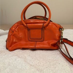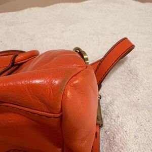 Chic orange mini bag with a unique design. Perfect for daily use. Features sturdy handles and a stylish look.