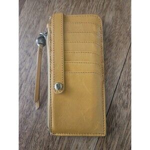 The HOBO Wallet in Mustard is a stylish and practical accessory for women. Crafted from leather, this zip-around wallet features a convenient zip pouch for added security. With dimensions of 7 inches in length and 3.5 inches in width, it is the perfect size to hold your essentials while on the go. The bright yellow color adds a fun pop to any outfit, making it a versatile and fashionable choice for everyday use.