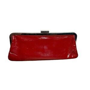 HOBO red crinkle patent leather large kisslock clutch wallet bag
