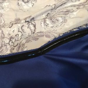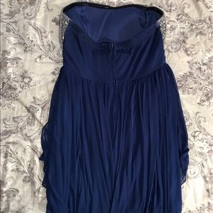 This is a delicately worn navy blue dress, only worn once, with ruffles that gives it a lovely flow look! The bottom layer fabric is very soft and comfortable to keep you happy on the dance floor.ππ½ππ½ππ»ππ»πΈπ½ Also has a comfy yet convenient rubbery fabric to keep the strapless dress from pulling downβ¬οΈπ³