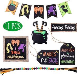 Hocus Pocus New Halloween Tray Decor I Smell Children Wooden Signs And Bead Garland Farmhouse Rustic Tiered Tray Decorations For Home Table 13 Pieces Total