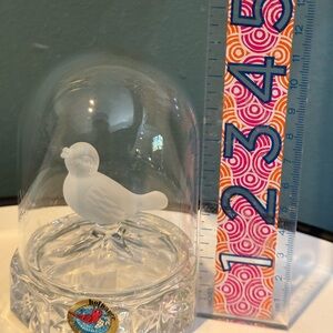 HOFBAUER Signed Byrdes Frosted Bird in a Lead Crystal Dome / Cage, 4.25" Tall.