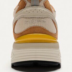 Running style shoes with a combination of materials.